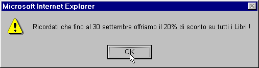 (!alert("Ricordati che fino al 30 settembre offriamo il 20% di sconto su tutti i Libri !"))